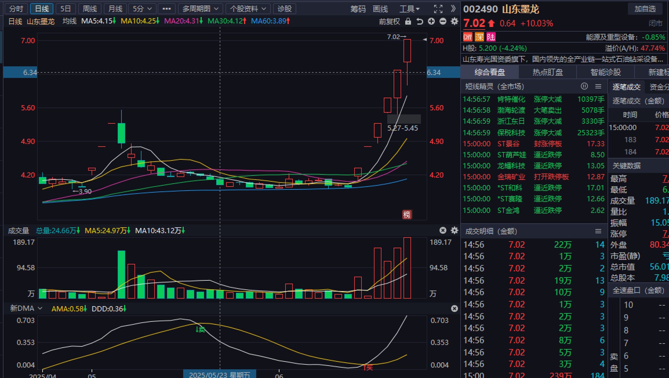 06 22 250622 复盘分析 ¶ 1. 油气板块(热榜数量占比最多)¶ 山东墨龙 六连板(栏板) 贝肯能源 跌停,此前最高为四板,第五板尾盘下杀没上板 准油股份 大幅下杀 如果周一高开说明强势,可继续拿 2. 稳定币 ¶ 高低位切换 恒宝股份 龙头走弱 安妮股份 楚天龙 低位走强 楚天龙强势地天 3. 热度第一宁波海运 ¶ 不清楚为什么第一 4.PCB¶ 中京电子 连扳 诺德股份 连扳 光伏与航运看情况,战争影响与抖音狂吹,不确定主力是否会出货 凤凰航运,南京港, 周五尾盘永安药业强势拉升 评论